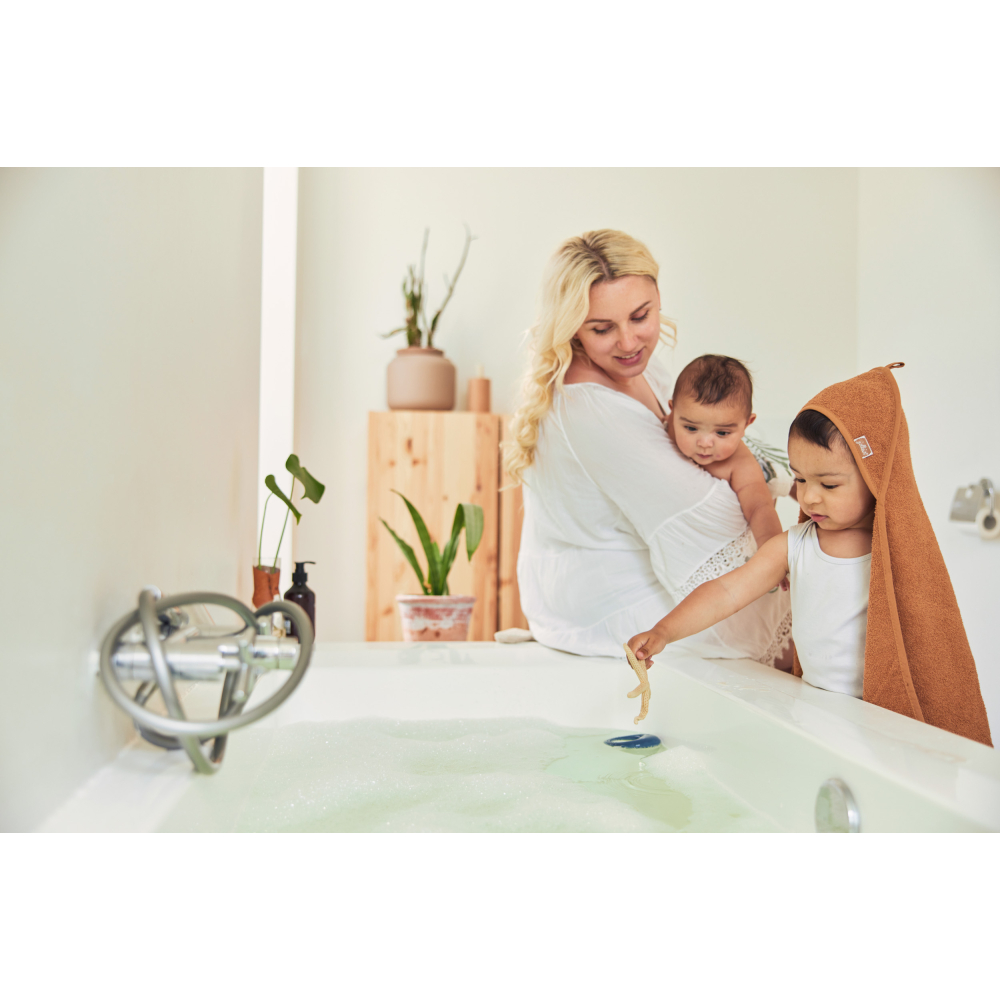 De zachte badstof is mild voor de tere babyhuid en neemt goed vocht op waardoor het afdrogen in een mum van tijd klaar is. Na gebruik hang je de cape gemakkelijk op aan het lusje.