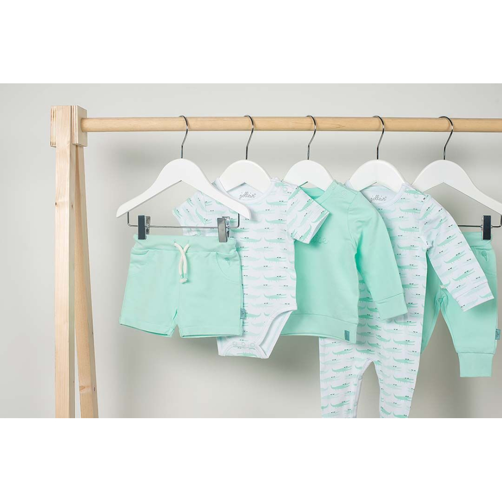 Dit lieve crocopakje is gemaakt van zacht katoen en voelt heerlijk aan op het huidje van je kleinte. Ook verkrijgbaar als romper.
