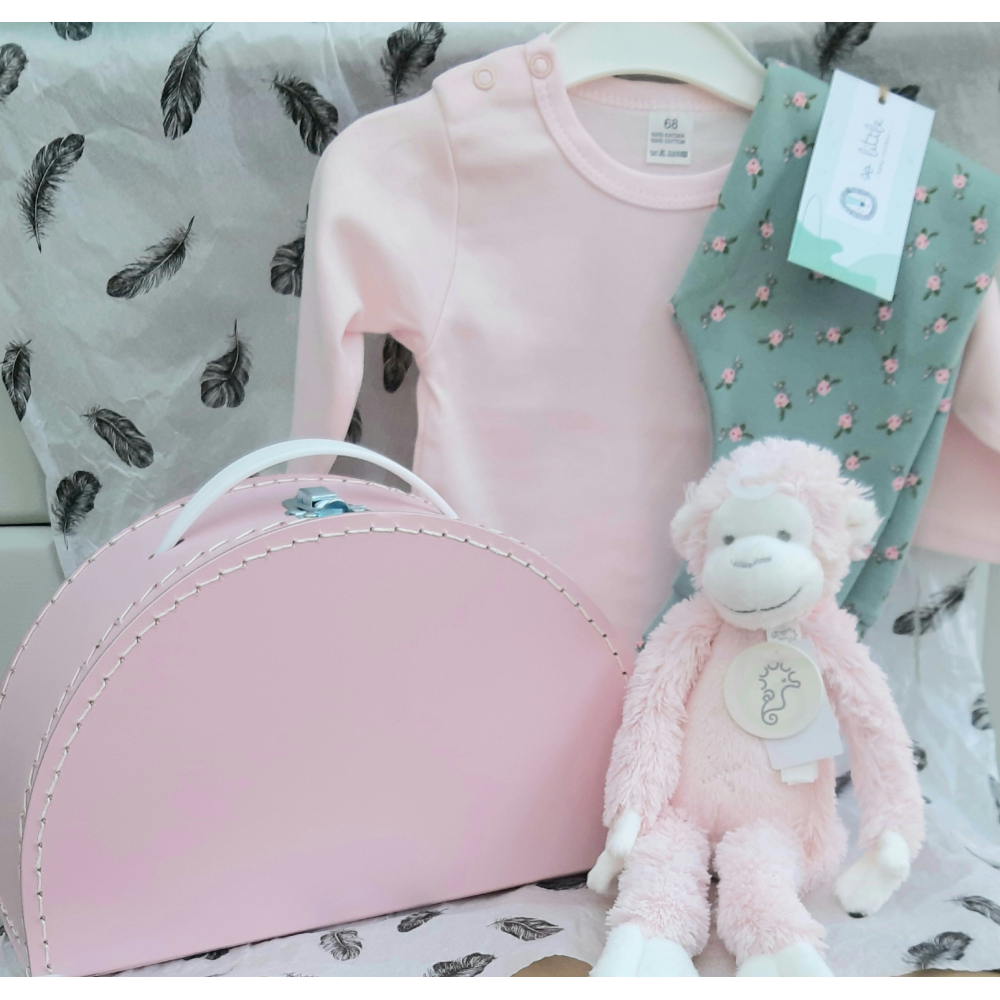 Inhoud pakket: aapje happy horse, baggy broekje, shirt, koffertje