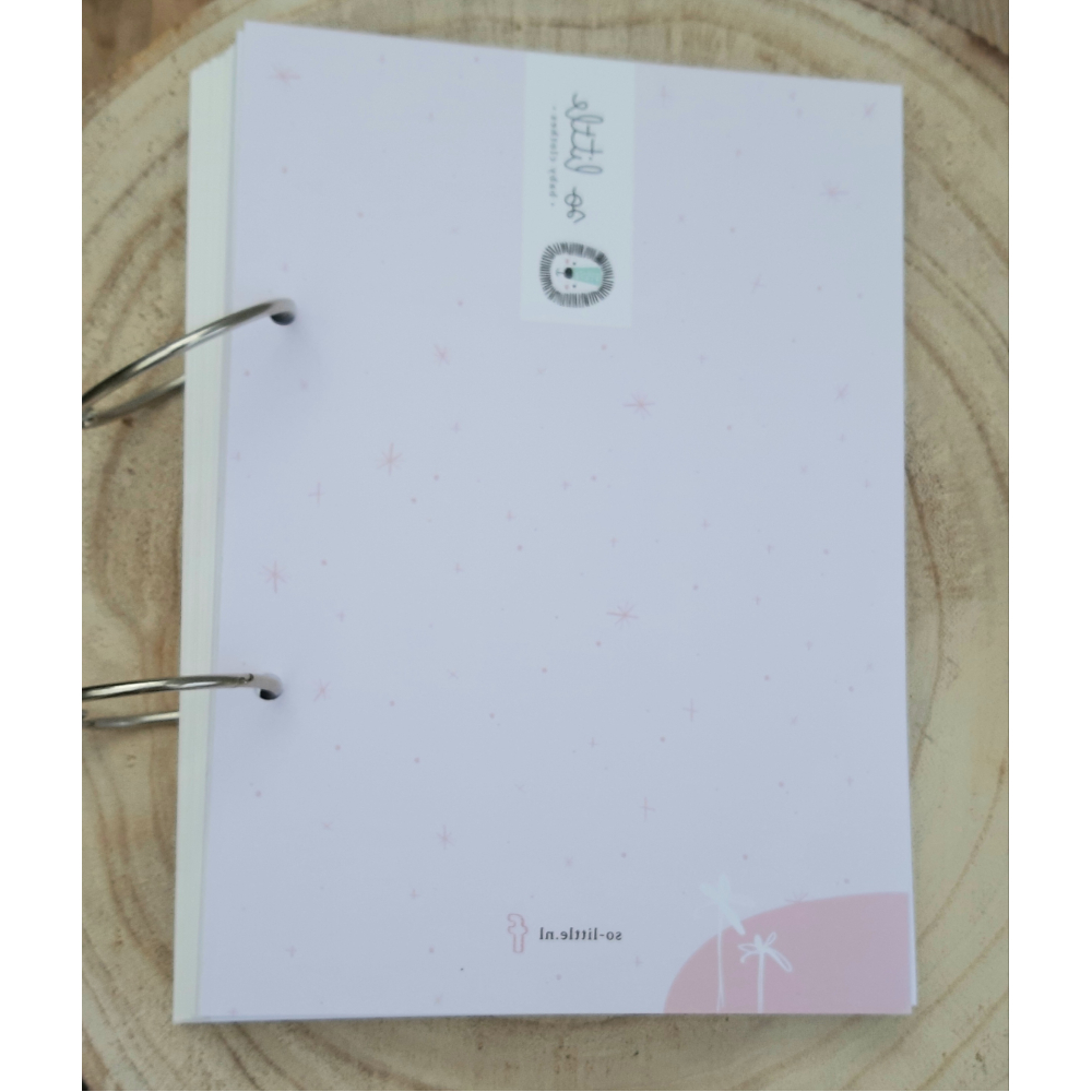 Om alle geboortekaartjes en wensen goed te kunnen bewaren is er een geboortebundel ontworpen voor so-little. De geboortebundel bestaat uit een voor- en achterkant en twee ringen die alles bij elkaar houdt. Leuk voor nu, maar vooral érg leuk voor later!