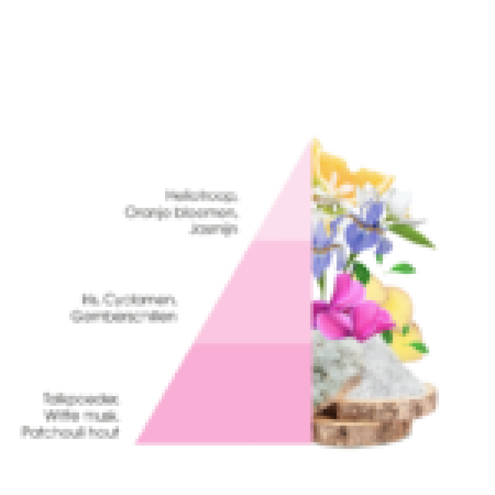Achtergrond: Talk poeder, Witte musk, Patchouli hout.