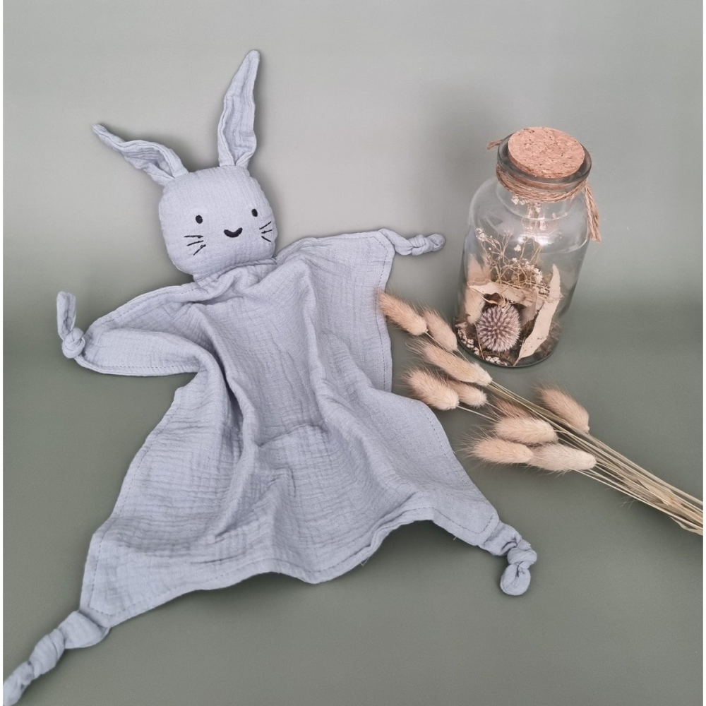 Rammelaartje hydrofiele knuffel Konijn - Grijsblauw
