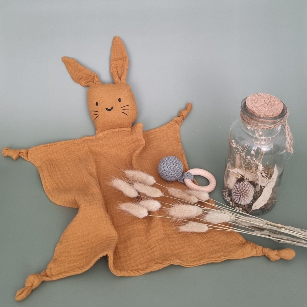 Rammelaartje hydrofiele knuffel Konijn - Okergeel