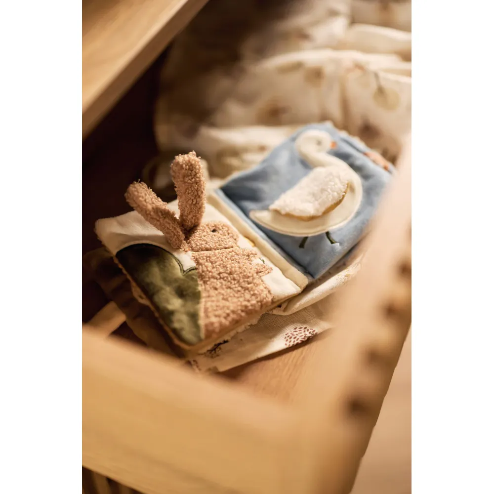 Dit zachte activiteitenboekje uit de Tiny Park collectie is speciaal ontworpen om de zintuigen van je baby te prikkelen. Het boekje telt vier pagina's, elk met een schattig dierfiguurtje, zoals een konijn, vogel, eend of zwaan. De pagina's zijn gevuld met knisperende materialen die uitnodigen tot ontdekken en spelen. Een spiegel en boompjes op de verschillende pagina's maken het boekje extra interessant. Een perfect speeltje om de zintuigen en motoriek van je kleintje te stimuleren!