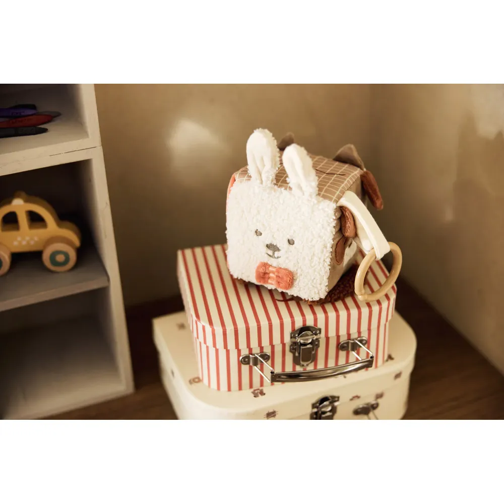 Deze activiteitenkubus uit de Animal Friends collectie biedt je kleintje urenlang speelplezier. Met verschillende dierenfiguurtjes en leuke interactieve elementen, zoals rammelaars, spiegels en knisperende stoffen, stimuleert de kubus de zintuigen van je baby. Ideaal voor het ontwikkelen van motorische vaardigheden en perfect voor in de box of de babykamer!
