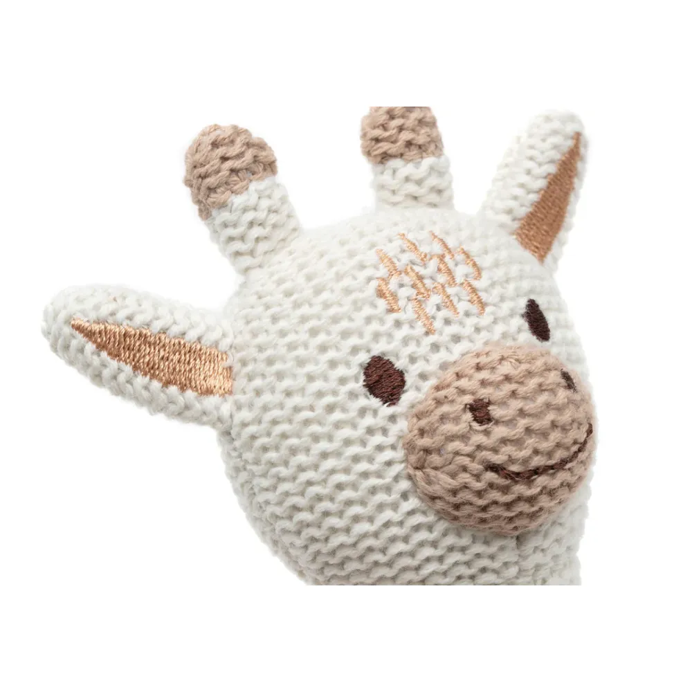 Rammel er op los met dit leuke gebreide ramelaartje. Het schattige dierengezichtje heeft meteen een grote aantrekkingskracht op jouw mini! In het rammelaartje zitten subtiele belletjes verwerkt zodat je kleintje er uren speelplezier van heeft. Nu hoef jij alleen nog maar te kiezen tussen de giraffe, vos en beer.