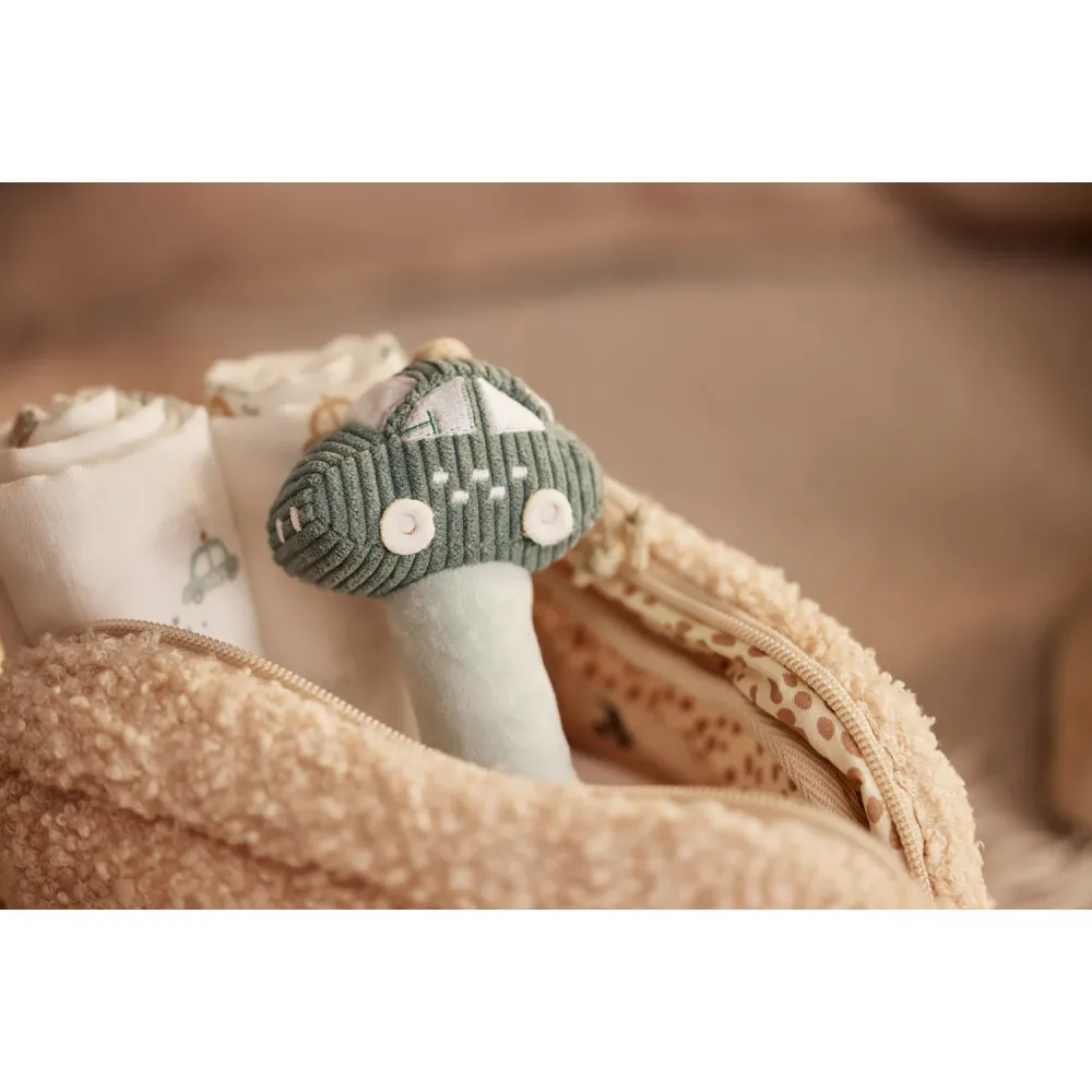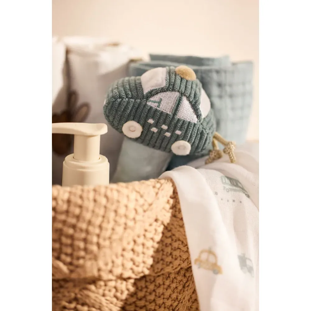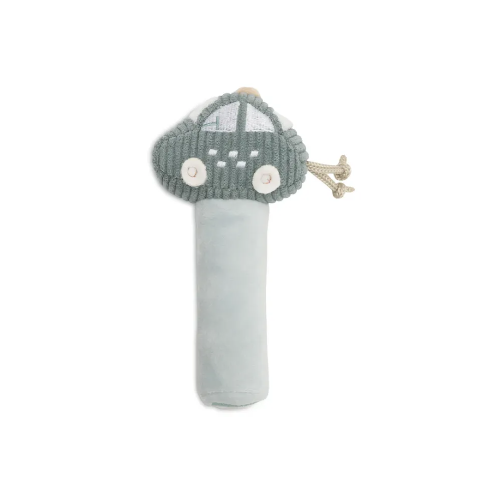 Deze vrolijke rammelaar is ideaal voor kleine ontdekkers. Dankzij het handvat onderaan kan je kleintje de rammelaar makkelijk vasthouden, en door het autootje te schudden, hoort jouw mini de vrolijke geluidjes. Het autootje in de kleur Cloud Blue sluit perfect aan bij de andere "On The Go" items en biedt uren speelplezier!