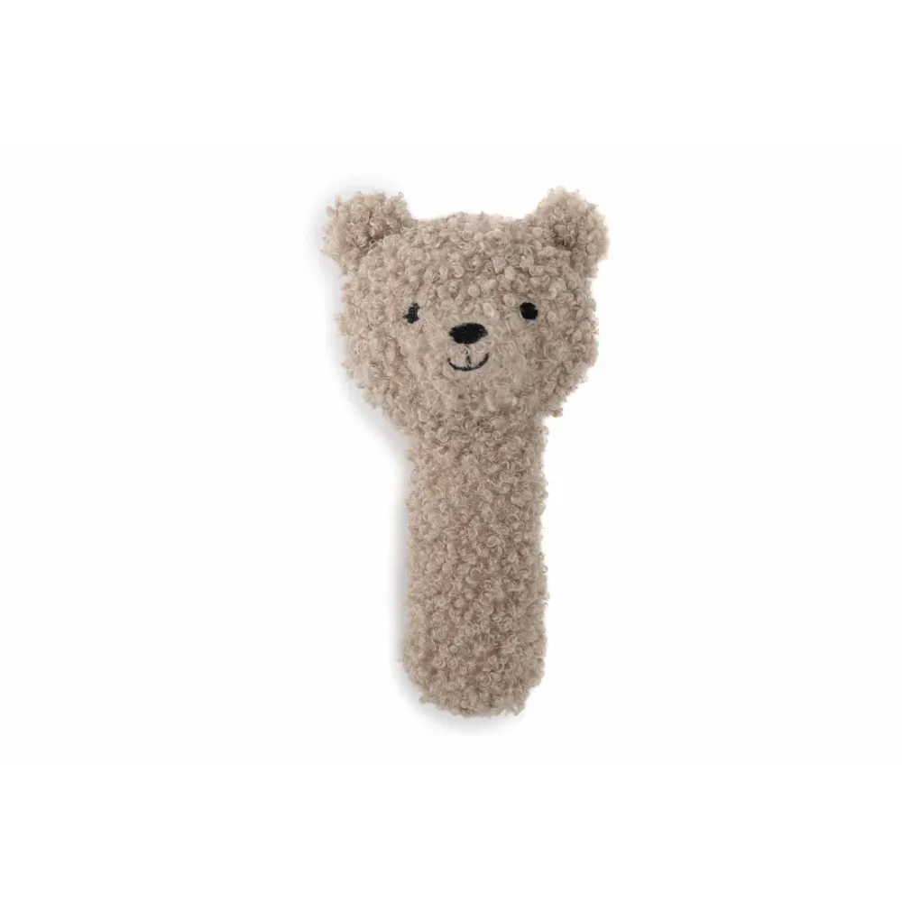 Rammelaars zijn een van de leukste speelgoedjes voor baby's! Ze zijn makkelijk vast te grijpen, maken leuke geluidjes en ook nog eens superleuk om te zien. In het hoofdje van het teddybeertje zit een belletje dat zacht rinkelt als je baby de rammelaar beweegt. Voor je kindje heel interessant om eindeloos te herhalen. En door de superzachte uitvoering is er na het spelen ook nog mogelijkheid om gewoon lekker met het teddy beertje te knuffelen. Cute! Kies jij voor Olive Green of Wild Rose?