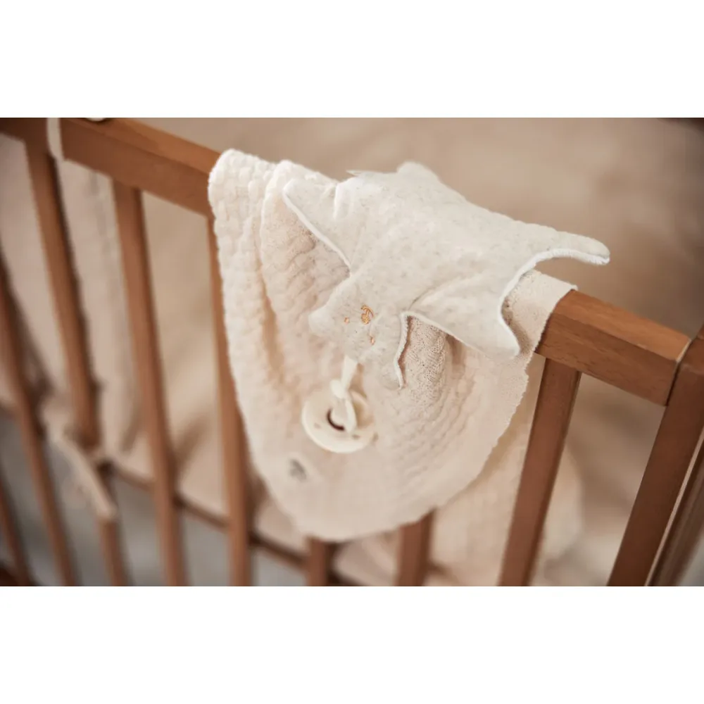 Ons speendoekje in de vorm van een schattig beertje is de ideale metgezel voor jouw kleintje. Aan de ene kant pronkt een lieflijk harvest printje, terwijl de andere kant heerlijk zachte badstof biedt. Dit veelzijdige doekje is niet alleen een geruststellende knuffelvriend, maar ook een handige speenhouder. Comfort en stijl gecombineerd in één, om je baby blij en tevreden te houden.