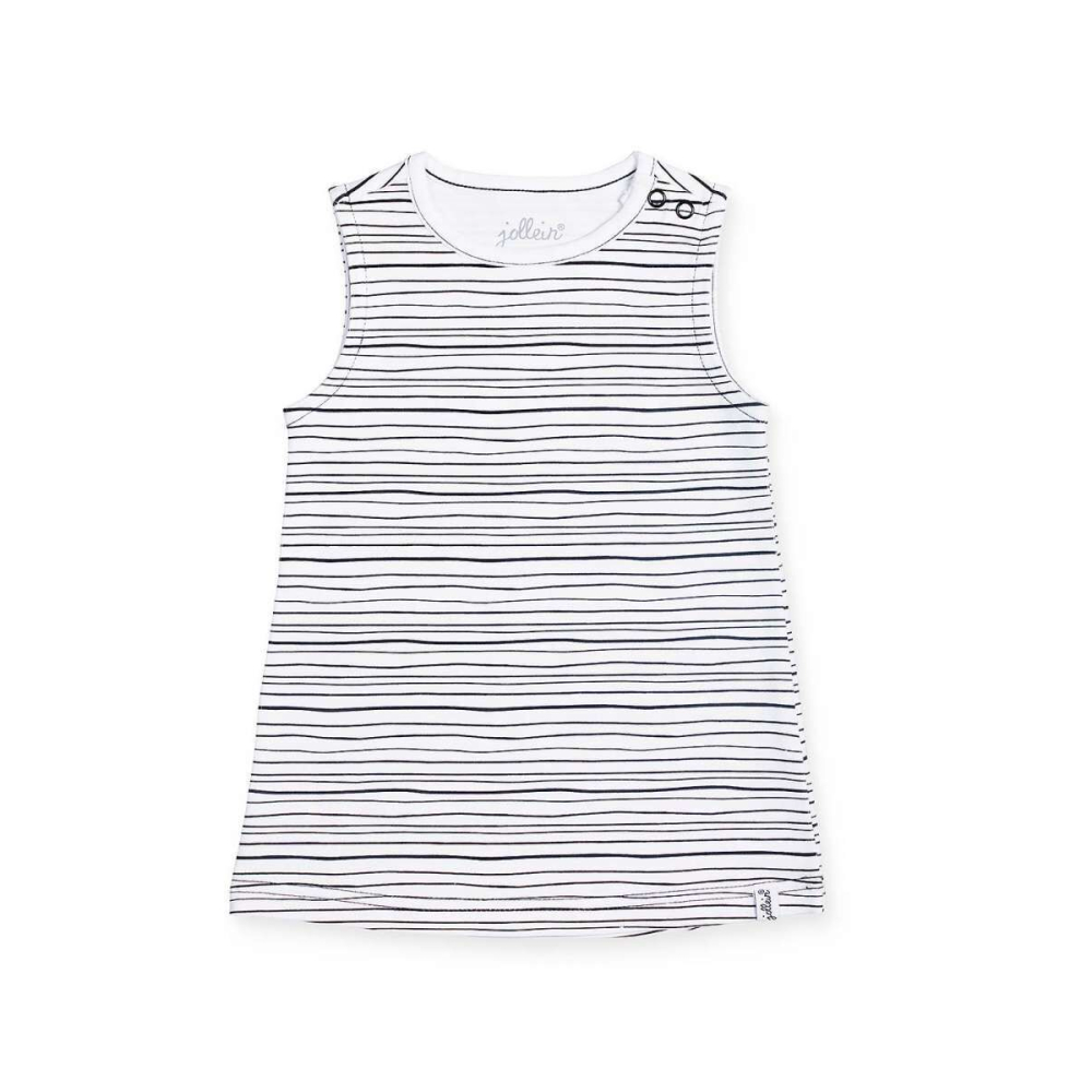 Leuk a-lijn jurkje voor baby's met zwarte streepjes van Jollein. Het jurkje is een fijne basic in wit met leuke zwarte streepjes. Het jurkje voor baby's is gemaakt van biologisch katoen en elastaan. Het mooie jurkje is verkrijgbaar in de maten 50/56, 62/68 en 74/80. De kleding van Jollein is GOTS gecertificeerd. Je vindt het jurkje in de Black stripes collectie van Jollein.