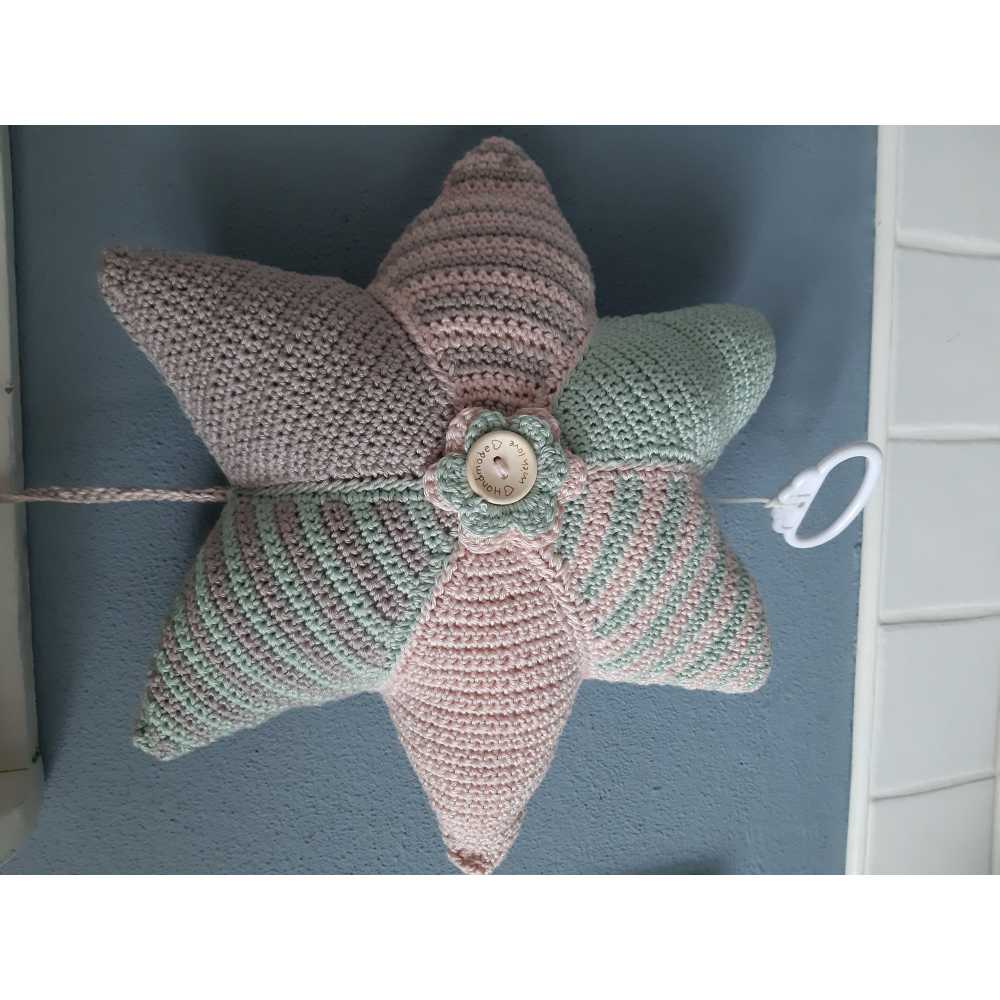 Deze prachtige muziekmobiel heb ik met veel liefde gehaakt. De kleurencombi bij elkaar ge match zodat het een prachtig geheel is geworden.