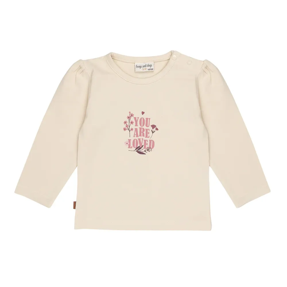 Een onmisbare toevoeging aan de garderobe van je kleintje. Deze zachte top met lange mouwen heeft een zachte crèmekleur en een liefdevolle "You Are Loved"-print, perfect om overal waar ze gaan, lieve vibes te verspreiden.
